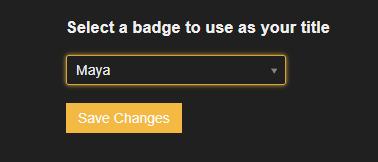 Yeah, my title in prefs just lets me select from my badges. which in my case is my Maya badge, as the others arenāt flagged to be used as a title.